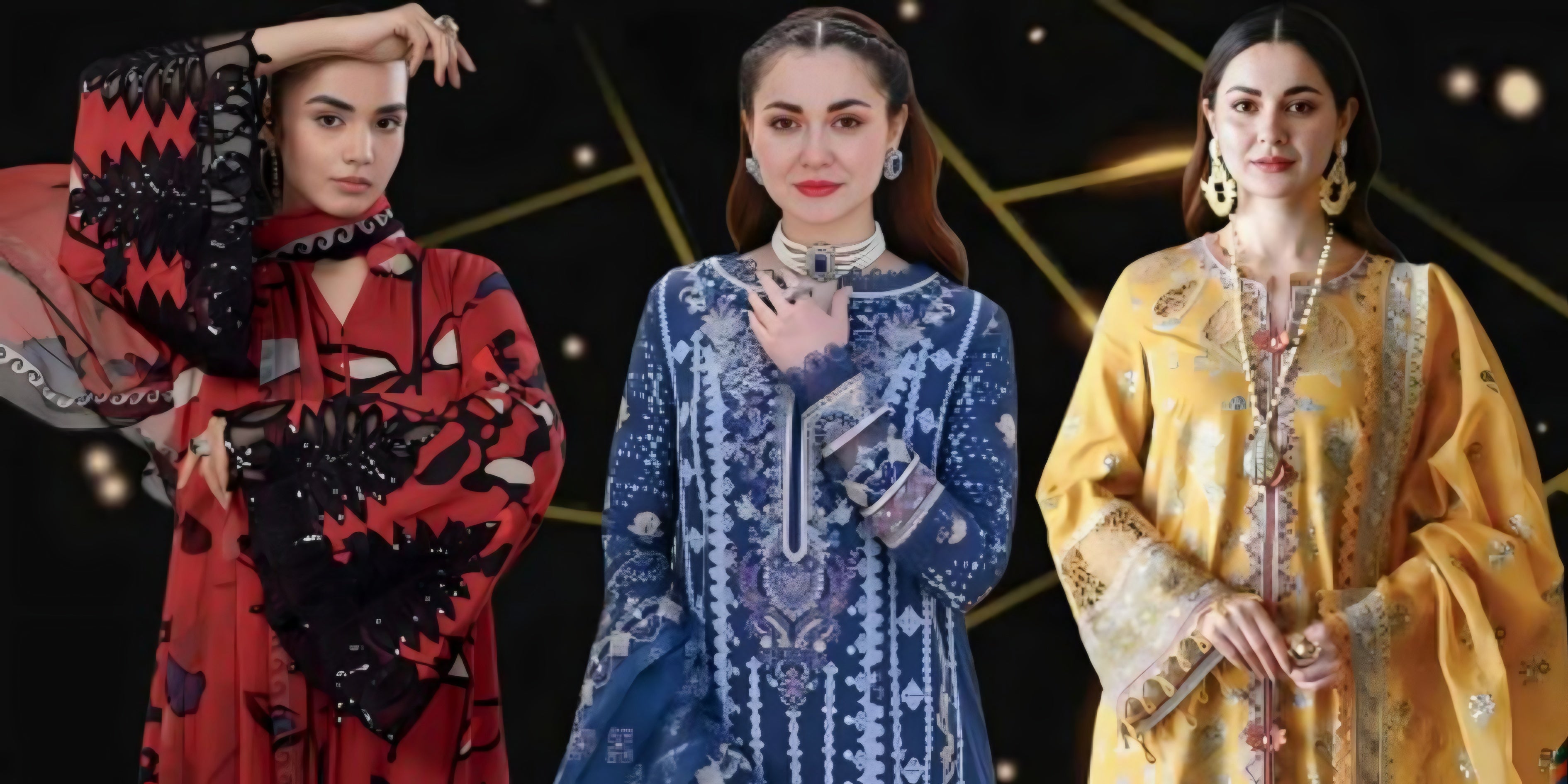 HR- SR14 3Pc Digital Printed Lawn Suit With Digital Printed Lawn Dupatta